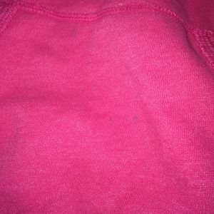 A few ink spots on the front pocket and near logo. A great comfortable fit and nice cozy hood for the fall.