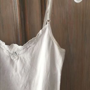 White American Eagle spaghetti strap with embroideries flowers on the neckline. Super simple and cute. Perfect for layering!