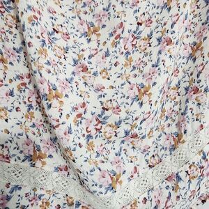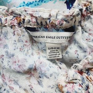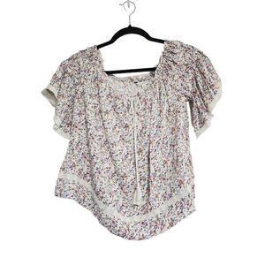 American Eagle Outfitters thin lightweight short sleeve white floral print tie neck peasant top 21" pit-pit 19" long