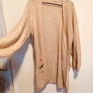 American Eagle 🦅 waffle knit fuzzy oversized puff sleeve pocket cardigan