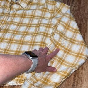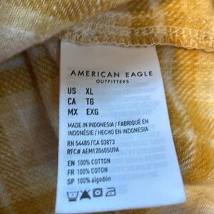 American Eagle women’s XL shirt flannel Yellow tan white Plaid Button-Up