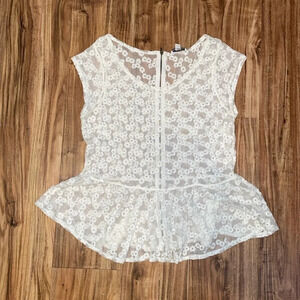 American Eagle women’s shirt XL sheer lace cap daisy peplum cream ivory AEO top