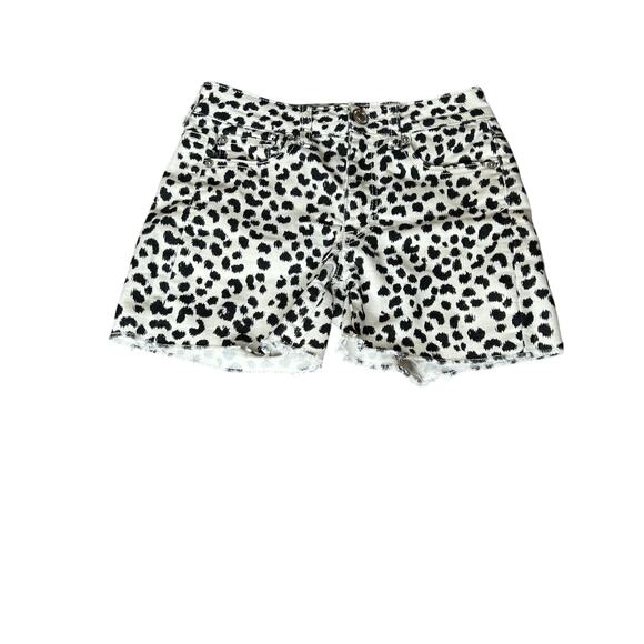 American Eagle womens size 24 shorts white/black cheetah print low-rise raw hem
