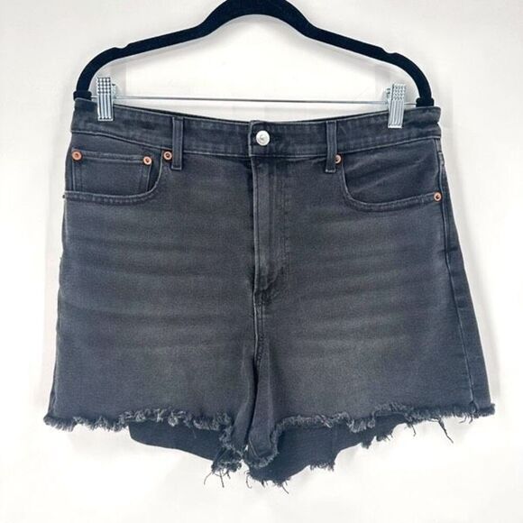 American Eagle Black 90s Boyfriend Distressed CutOff Hi Rise Denim Shorts Sz 12