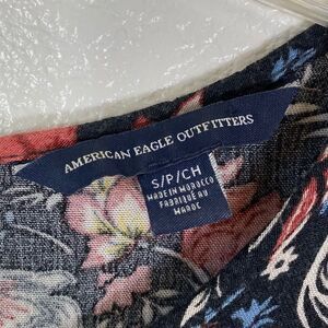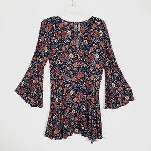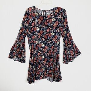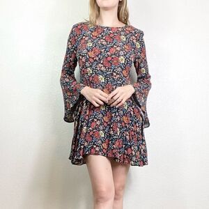 American Eagle Black Floral Flared Bell Sleeve Mini Dress