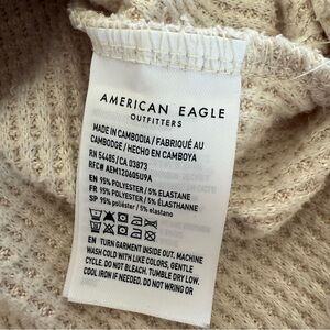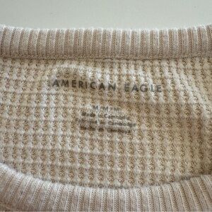 American Eagle-Crew Neck-Waffle-Shirt-Tan-Oversized-Cozy-Soft-Basic-M