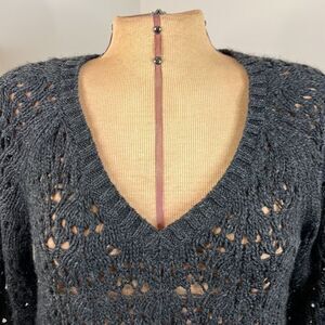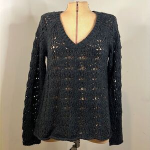 American Eagle Dark Grey Open. Weave V-Neck Sweater - Size Medium