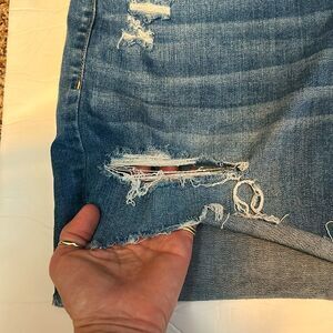 Elevate your casual style with this chic distressed denim mini skirt. Perfect for a trendy, laid-back look.