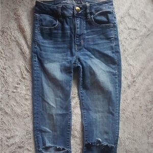 American Eagle Hi Rise Jegging Jeans Cut Knees Womens Size 0