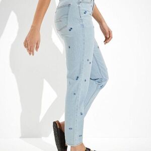 American Eagle Outfitters Light Wash Floral Embroidered Highest Rise Mom Jeans Size 4. $69.95 retail. They are in excellent condition.