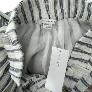 American Eagle Linen Blend Striped Pants Womens Size XS White Blue High Rise NEW