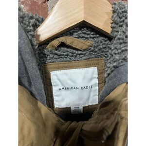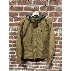 American Eagle Mens Brown Canvas Full Zip Hooded Jacket Size Small