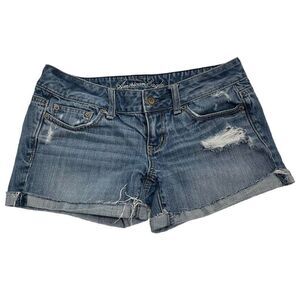 American Eagle Outfitters AE Women’s 4 Distressed Jean Shorts Festival Hi Rise