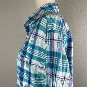 Super cute and classic plaid button-down shirt by American Eagle outfitters. It measures 20 inches armpit to armpit laying flat and is 24 inches in length from the shoulder to the hem.