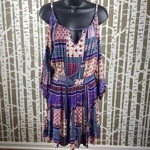 American Eagle Outfitters Boho Cold Shoulder Quilted Pattern Floral Dress sz M