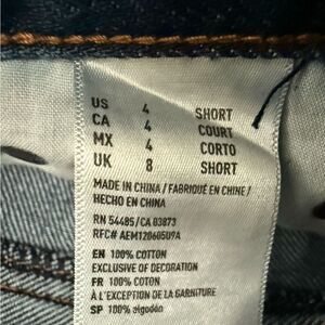 These American Eagle Outfitters jeans showcase a classic blue hue with a trendy ankle distressed design. The distressed details and raw hem add a modern, casual flair, making them perfect for everyday wear.
