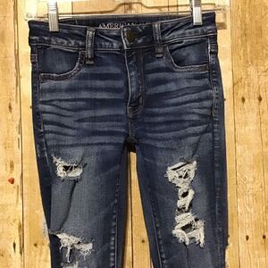 American Eagle Outfitters Next Level Stretch Distressed Jegging Crop Jeans 0