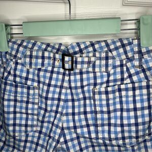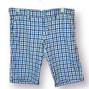 American Eagle Outfitters White Blue Plaid Roll Tab Bermuda Cotton Shorts Size 8