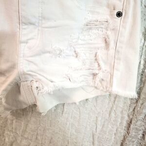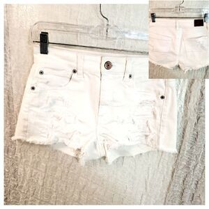 White distressed short shorts. Front and back pockets. Super strech. Pre-owned in good condition. Please refer to pictures for best description and condition verification.