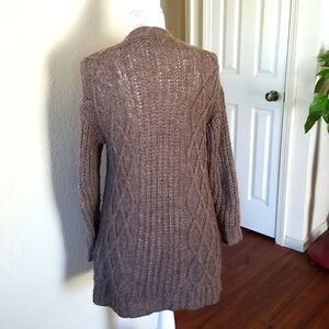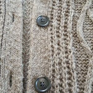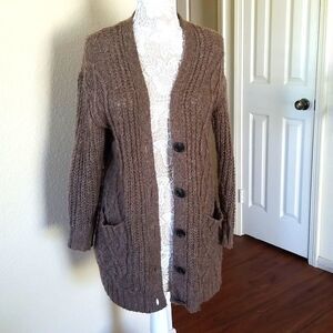 Pretty lightweight, wool blend cardigan with button down front, and two pockets in a pretty dark taupe color. Oversized. Length measures 33". B31.01