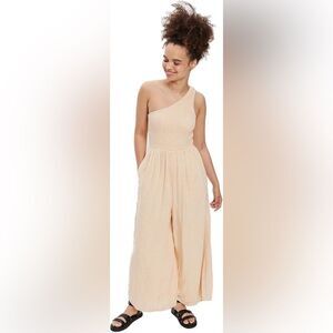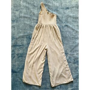 American Eagle Pale Goldenrod Yellow Cream Floral One Shoulder Jumpsuit Small
