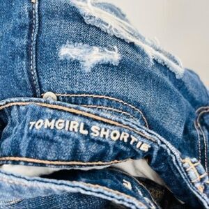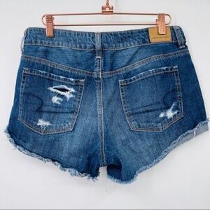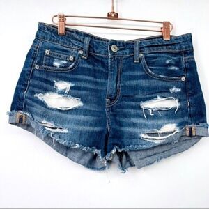 American Eagle Tomgirl Shortie shorts size 4 dark wash raw hem BoxS