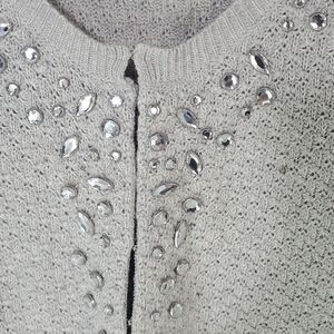 American Eagle Women's Beaded Cardigan Sweater Grey Size Large