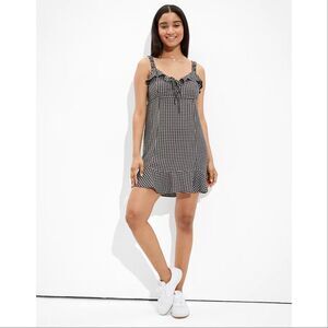 American Eagle Y2K Check Ruffled Mini Dress Sundress Black White