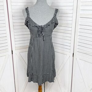 American Eagle Y2K Check Ruffled Mini Dress Sundress Black White Large