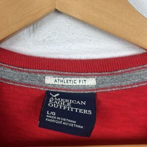 American Eagle men’s Y2K athletic fit patch graphic red short sleeve t-shirt