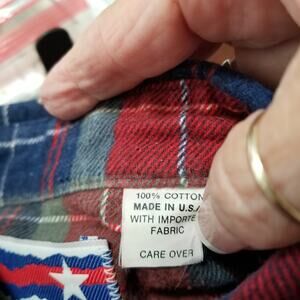 American Edition Men's Multicolor Plaid Flannel Long Sleeve Button Up Shirt -- Size M; Color - Multicolor Red, Blue, Gray, White; Material - 100% Cotton; Care - Machine Wash Warm; Made in USA; Long Sleeves, 2 Button Chest Pockets, Button up Front, Pointed Collar, Round Hem, Yoke on top Back,