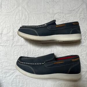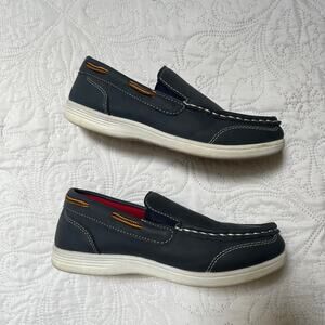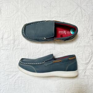 American Exchange slip on loafers. Boys dress shoes in blue suede like material. Very good condition, light wear. Great school uniform shoes. Size 2 big kids.
