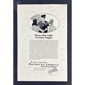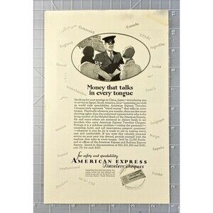 American Express Travelers Checks "Money That Talks in Every Tongue" VTG Ad 1929 National Geographic Magazine 1929 About 10 x 6.5 Inches. Carefully shipped.