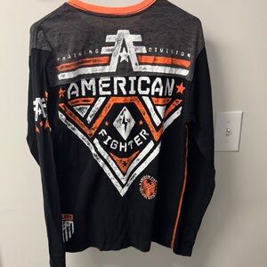 Dynamic long sleeve tee with striking graphics. Bold black and orange design. Perfect for casual wear. Excellent condition.