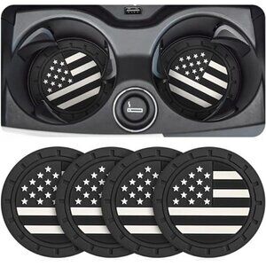 American Flag Car Cup Coasters 4-Pack Cup Holder Anti Slip Rubber Vehicle Black