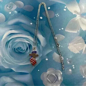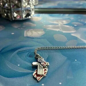 American Flag Cross One Nation Under God Pendant Stylish Unisex Silver Necklace