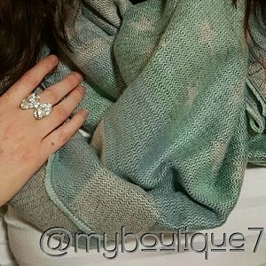 American Flag knitted infinity loop scarf in brushed acrylic yarn. Mint and blue shades. Extra large. Super Soft and Cozy Brand New still packaged.