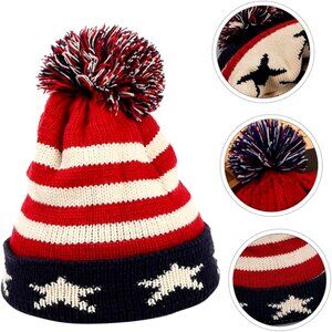 American Flag Jacquard Beanie With Pom Unisex Stripped Patriotic Cap. Show off your patriotic spirit with this American Flag Jacquard Beanie with Pom!