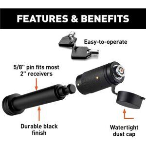🧿trailer hitch lock is made of solid hardened steel, and is not easily broken or rusted. With a 5/8-inch diameter pin, our product fits most Class III & IV hitches with 2 inch receivers.Each lock cylinder is unique and protects your hitch from theft.2 keys are included