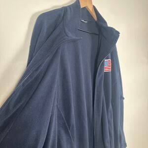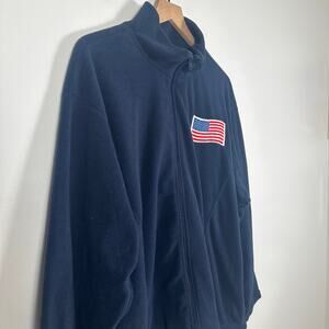 American Flag Patch Mens Patriotic Full-Zip Long Sleeve Navy Fleece Jacket L/XL