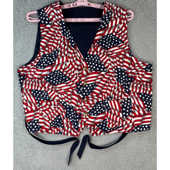 American Flag Patriotic Vest Mens Handmade Gold Buttons