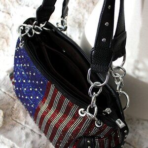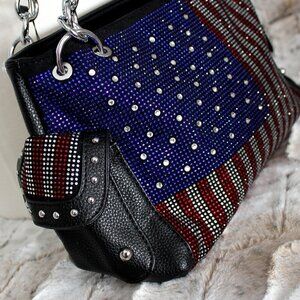 American Flag Red White Blue Rhinestone Bling Black Hobo Patriotic Handbag Bag