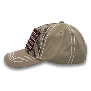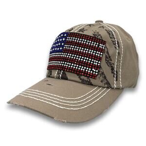 Brand New With Tags Khaki American Flag Rhinestone Mom Dad Hat Cross-Stitched Stars & Stripes Baseball Cap