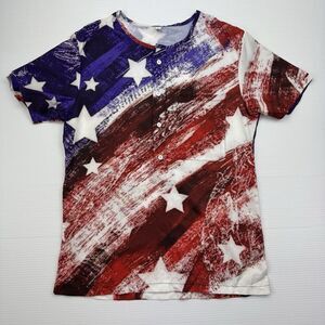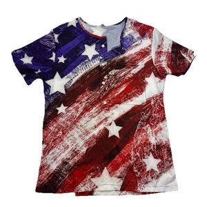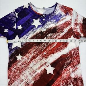 American Flag Shirt Buttons Pocket Printed USA Patriotic Size Large Lightweight