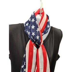 This stylish American Flag chiffon scarf features a bold red, white, and blue design with stars and stripes, adding a touch of patriotism to your outfit. Lightweight and versatile, it is crafted for comfort and easy styling while offering ample coverage. Measuring approximately 22 inches wide and 59 inches long, it is suitable for various uses, from fashion to accessories. The breathable material provides durability and a soft texture, making it appropriate for year-round wear. Celebrate patriotism with this eye-catching scarf that blends style and functionality effortlessly. ** No tags appears to have never been worn.