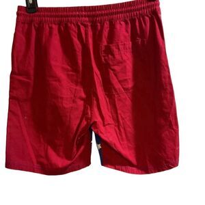 Dive into summer with these vibrant, multicolor swim shorts, perfect for any patriotic celebration or a casual day at the beach. Designed with an elastic waistband and adjustable drawstring, they ensure a secure and comfortable fit for all your activities, from swimming to beach volleyball. The lightweight fabric dries quickly, keeping you comfortable both in and out of the water, while the mesh lining offers additional support. Side pockets add practicality to these stylish shorts, adorned with an American flag pattern that's sure to make a statement. Machine washable for easy care. This pre-owned pair is in great condition, with a size S waistband measuring 30 inches, ready to complement your summer adventures.