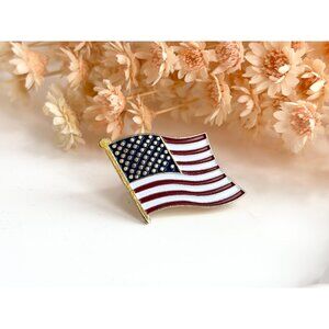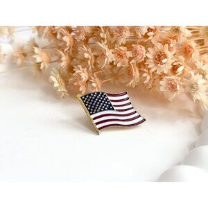 Gold toned enameled vintage American flag pin. Textured posterior with a pin pinch back enclosure. Lovely piece in excellent condition. Wonderful for 4th of July. Bigger than it seems.