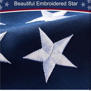American flag featuring strong brass grommets. Classic red, white, and blue design with stars.