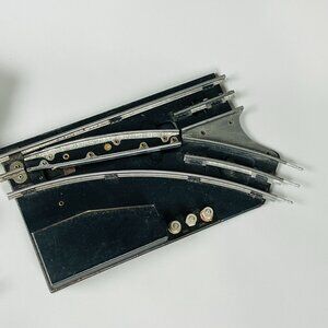 This vintage train track set by American Flyer includes curved tracks, a transformer, and a crossing piece. Ideal for model train enthusiasts or collectors.
