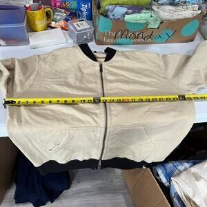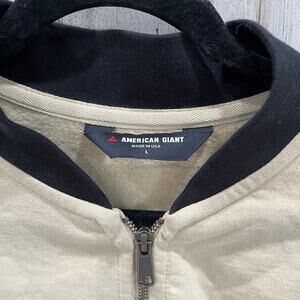 American Giant Fleece Bomber Khaki With Black $168 Luxe Cotton Mens Large